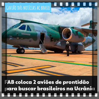 Brasileiros na Ucrânia - A Força Aérea Brasileira informou neste sábado que colocou "de prontidão" dois aviões KC-390 Millennium para o eventual transporte de brasileiros que tentam deixar a Ucrânia em razão da guerra motivada pela invasão do país por tropas militares russas.